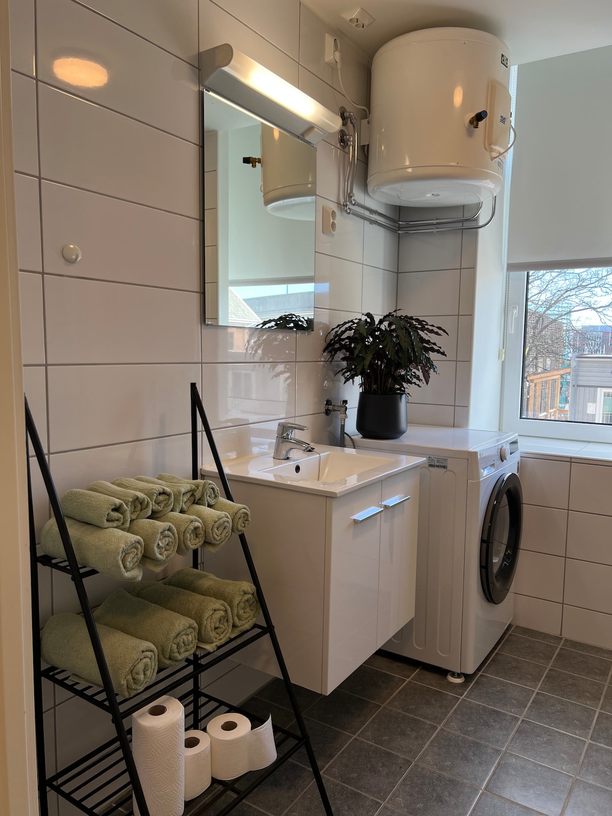 Fin og koselig nyrenovert loftsleilighet i delikate farger og interiør, sentralt i Haugesund sentrum. Leiligheten har fullt utstyrt kjøkken, og bad har både vaskemaskin og tørketrommel. På soverommet er det 1.40 meter bred dobbelseng. Det er wifi ,altibox, og TV i stuen. Koselig uteområde med pergola og egen bakgård. Leiligheten ligger i kort gåavstand til alle byens fasiliteter som spisesteder, handlegate og utesteder. Edda kino, Cibo pizza og Strand restaurant, er kun to minutter unna.
