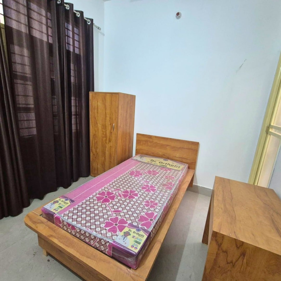 Welcome to The Meraki homes, your ideal retreat in Karnal! The elegant living area includes a comfortable sofa and A fully equipped kitchen with refrigerator and RO water purifier is provided, along with amenities like a wifi, geyser, Ac, and 24/7 water supply