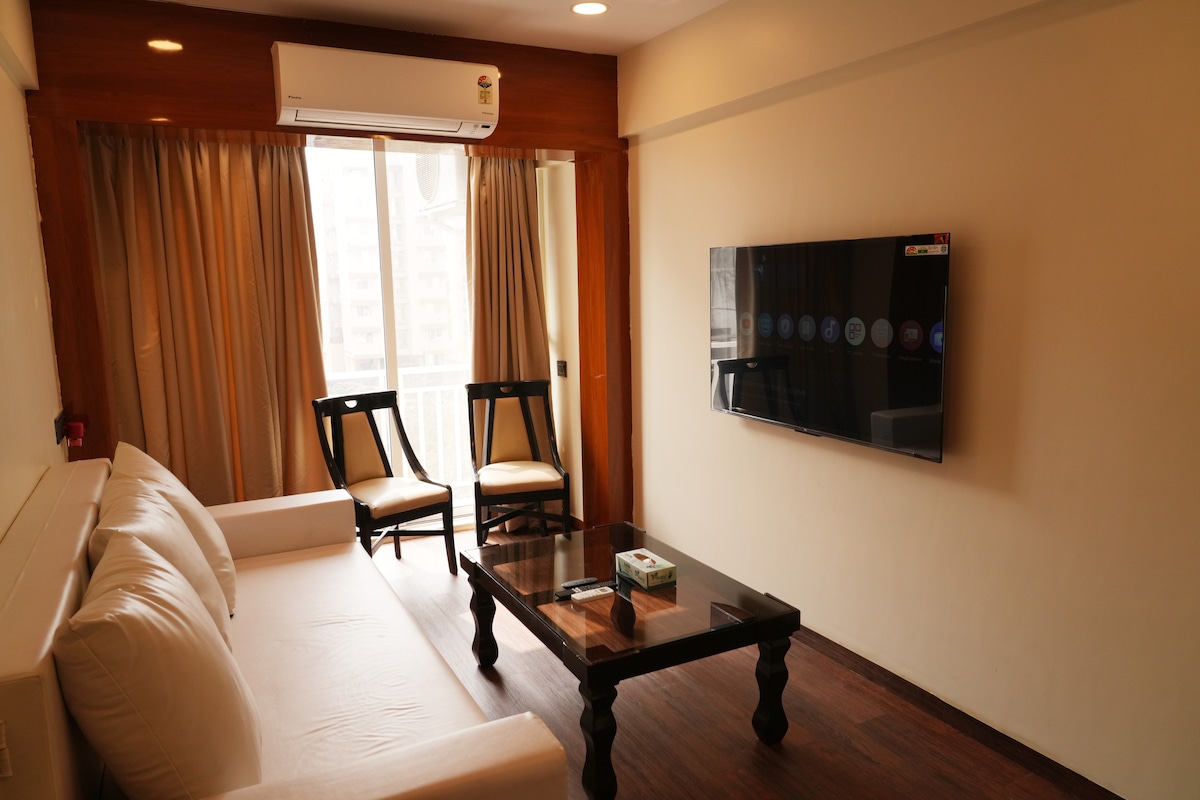 Experience the perfect blend of luxury and comfort in this beautifully spacious 2-bedroom apartment. Ideal for business travellers & visitors to BKC, the apartment offers a serene atmosphere with beautiful tree-lined views from every window – your tranquil retreat in the city that never sleeps. Centrally located, this contemporary haven promises a relaxing environment while you explore Mumbai. The apartment is: - 8 minutes to the Domestic & International airport