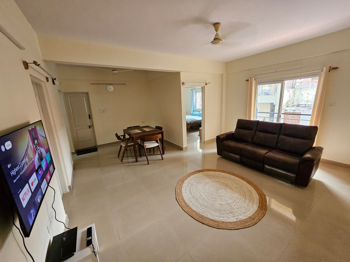 NO PARTIES LOUD MUSIC ALLOWED. APARTMENT ASSOCIATION IS VERY STRICT ON THIS Indulge in our 3-bedroom Airbnb in IndiraNagar, Bangalore, each room with a TV featuring Amazon Prime & Netflix. Relax in the living room with a 65-inch 4K TV and AC. The kitchen is fully equipped with pots, pans, fridge, dishwasher, microwave, and a washing machine. Enjoy the convenience of 2 attached bathrooms and one common bathroom and daily housekeeping for a comfortable stay.