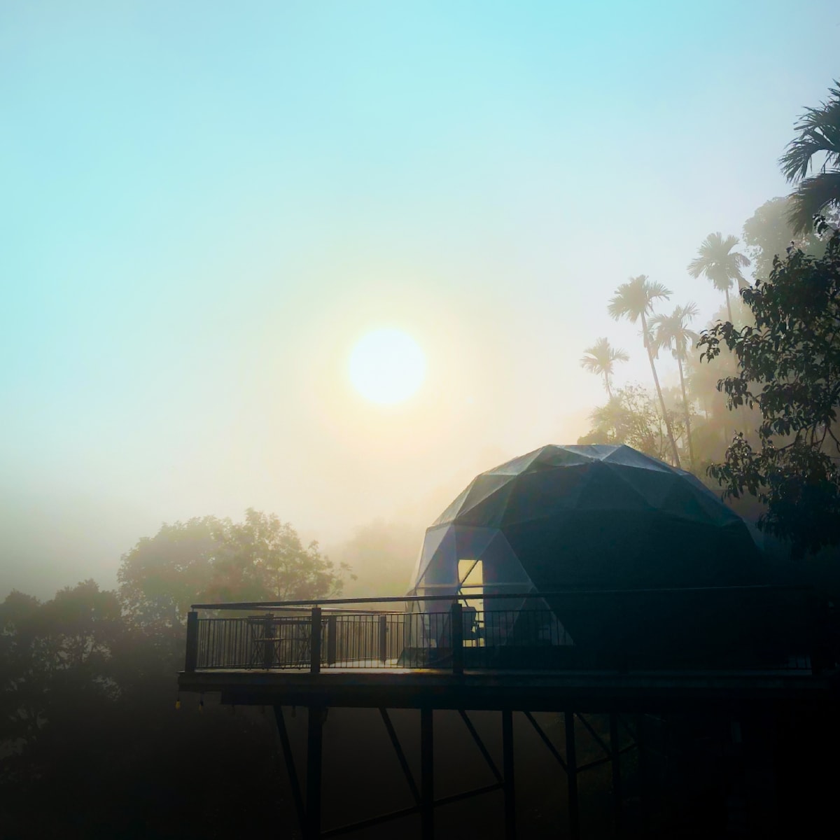 Super private Tree dome experience inside a coffee estate on top of the estate hill with an amazing view of the mountains and the coffee estate! elevated about ground on a valley , large rooms , large bathroom, suspended hammock ,open deck space , lounging beds can accommodates even 4 comfortably! it comes with dark out curtains for totally privacy ... experience private and exclusive experience of its kind. 1st tree dome ever ! Great food, bonfire, estate tour, waterfall all available
