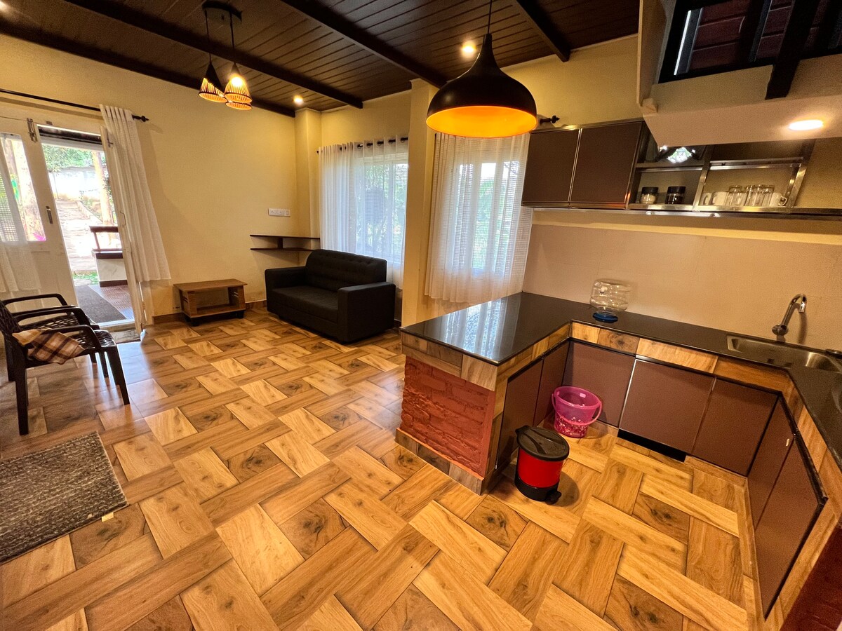 Welcome to Mandharam, a private modern cottage at Zyamadhari organic farm in the foothills of the Brahmagiri hills, Wayanad. The cottage has 2 bedrooms and 2 bathrooms with bathtubs, orthopedic beds with memory foam pillows, AC, and high-speed internet. Fully pet-friendly, it includes a kitchen and a cozy bonfire area. One side opens to a coffee estate, the other to scenic paddy fields with geese and chickens. Perfect for a peaceful nature stay with modern comforts.