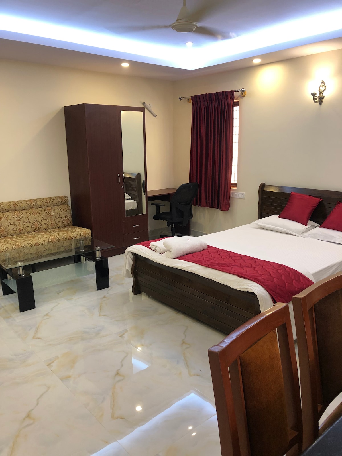Family Friendly Studio Apartment Located in the centre of the city near Brigade Road and M G Road .Brand New ,very clean , studio apartment with a Private Bathroom , Kicheenette and private work space . The Studio is renovated with high end furnishings and closets.