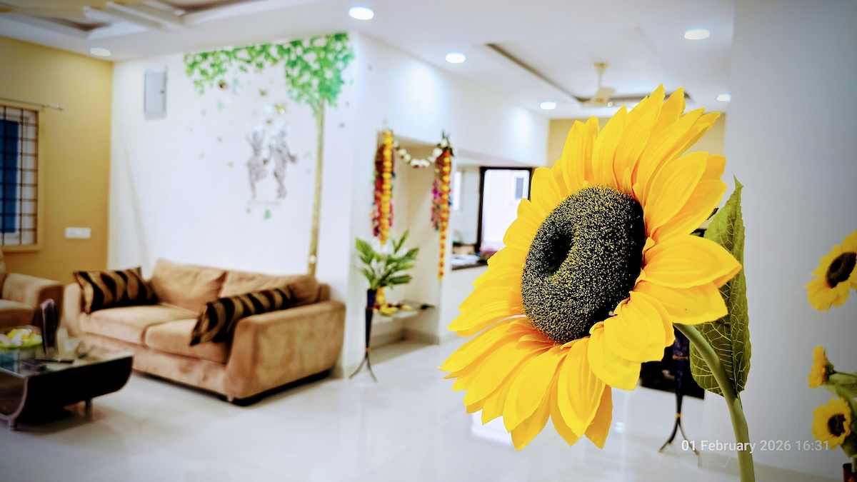 A studio carefully designed by me, offering pure elegance & functionality, making you feel home & comfy. 24 hour male/female guard Short walk: Restaurants Bus stops You're just: 15 minutes - HYD City Centre 19 minutes - Airport (RGIA) 26 minutes - Hitech City / Financial Dist. / US Emb Your stay includes: Parking Snacks Cold/hot beverages Towels Private bathroom Water geyser No-bugs Housekeeping Refrigerator Electric kettle Air conditioner 24h electricity backup