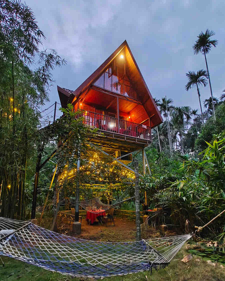 Welcome to our simple living concept with nature and farm life style. Our duplex treehouse is a tiny house build at 35feet height, which is on an organic plantation at the banks of Kabani river. It’s in two levels; bottom level having bedroom, bathroom and a terrace. Recommended for a relaxed stay. Breakfast is complimentary. No extra charges for activities. No loud music, party or stags group please.