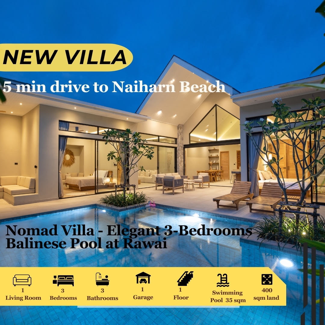 Villa de luxe au design moderne avec piscine privative, parfaitement adaptée à votre séjour en famille ou entre amis. Située dans un quartier paisible, proche de toutes commodités, et des plages de Rawai et Naiharn, cette somptueuse villa dispose d'une piscine entièrement recouverte de marbre, et dotée d'un systeme de filtration à eau salée. A l'intérieur, vous disposerez de 140 m2 repartis en un grand salon ouvert sur une cuisine toute équipée, ainsi que 3 chambres avec salle de bain privée.