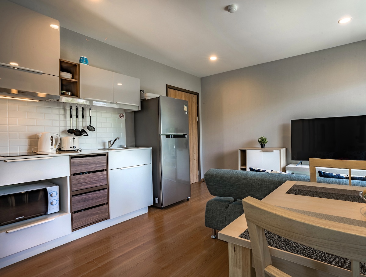 公寓毗邻kata夜市。距离卡塔海滩:500米;卡伦海滩:900米;楼下有多个旅游商店、ATM取款机、钱币换汇店、租车店、按摩服务、当地海鲜市场和24小时的711便利店。 餐饮:附近由许多国际餐厅,专门提供泰国,意大利,日本,中国和印度美食的餐厅。可找到音乐酒吧。 运动:附近由冲浪俱乐部、迷你高尔夫球场、网球场、立式桨板滑翔和帆伞运动。 房间介绍 房间设有1间卧室和1间客厅,大阳台,厨房和厨具和冰箱(可烹饪)。主卧一张双人床,客厅有一张沙发床,可容纳最多3人。浴室与干湿分离,配有浴缸和淋浴区,提供24小时热水和wi-fi无线网络。 其他注意事项 仅允许在阳台吸烟,房间内禁止吸烟。 房费不包含每日清洁费,瓶装水和纸巾,因为我们尽量保持低廉的每日价格,以保障房客的利益。我们只收取1次清洁费,用于支付退房清洁费。 如果您需要清洁服务,可以提前至少一天预订,但需支付额外费用。 房客使用权限 房客可以使用公寓社区&小区的公共设施。 社区配置: *免费停车场 * 两个无边游泳,天台无边泳池 * 屋顶健身房 *儿童游乐室 * 地面泳池酒吧 *一楼24小时接待大堂 *24小时安保服务