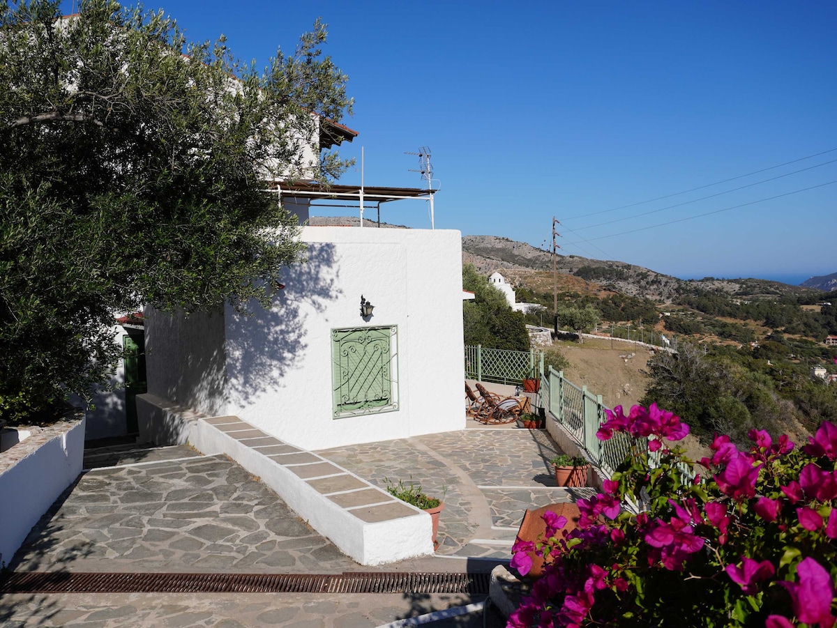 Irene’s Cottage Myrtonas is a peaceful hilltop escape, perfect for couples. Just 15 mins from Kyra Panagia Beach, it offers sea views, a large private patio with BBQ, full kitchen, cozy dining/living space, and a traditional Karpathiko loft bed with storage. With A/C, WiFi, and washer, it blends comfort, charm, and authentic Karpathian style for a romantic and relaxing getaway.