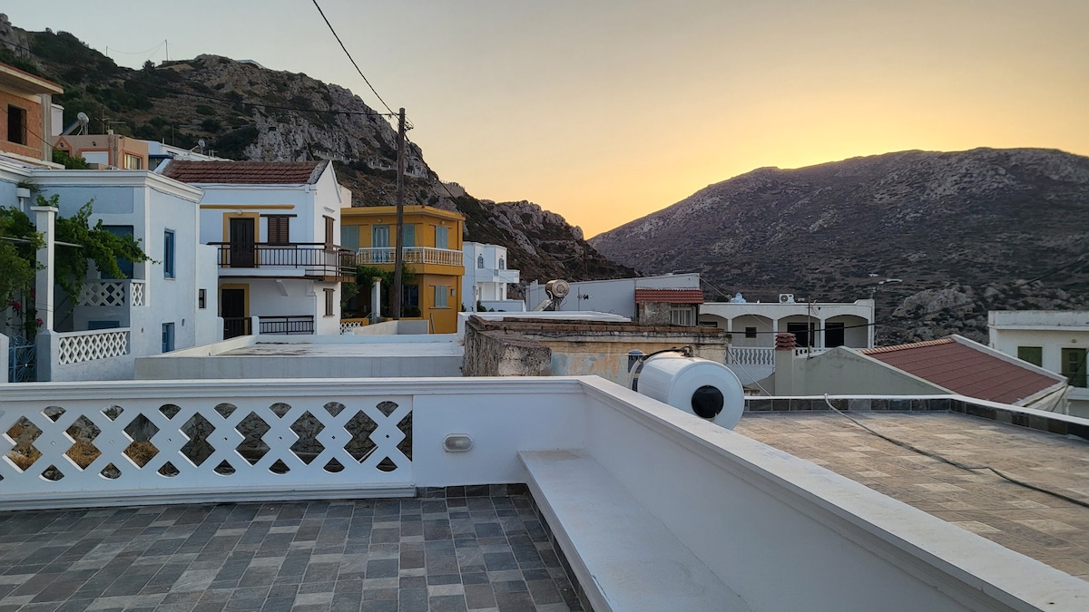Fully renovated studio with vintage mood, in the centre of Pigadia, 2 minutes on foot from supermarkets, banks, restaurants and bars, taxis and the bus station. Equipped kitchenette, tv, internet and air condition. On the 3rd floor (no lift) but with spacious balcony and a rewarding view. We would like to inform our guests that the sustainability fee from this year is 8 euro per day and has to be paid cash upon your arrival.
