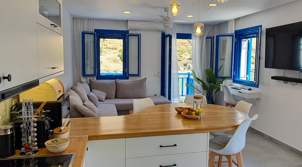 The Ship is, a seafront apartment with a breathtaking view. Enjoy hiking, relaxation, tradition & 5 beaches 5 min. away . Around are restaurants, cafes, mini market, bakery. You can enjoy in complete peace the amazing sunset direct in front of your eyes, as well as the starry sky at night and sleep hearing the waves music. In August, enjoy the special beauty of the lilies that bloom around, and it is a unique feature of our region.