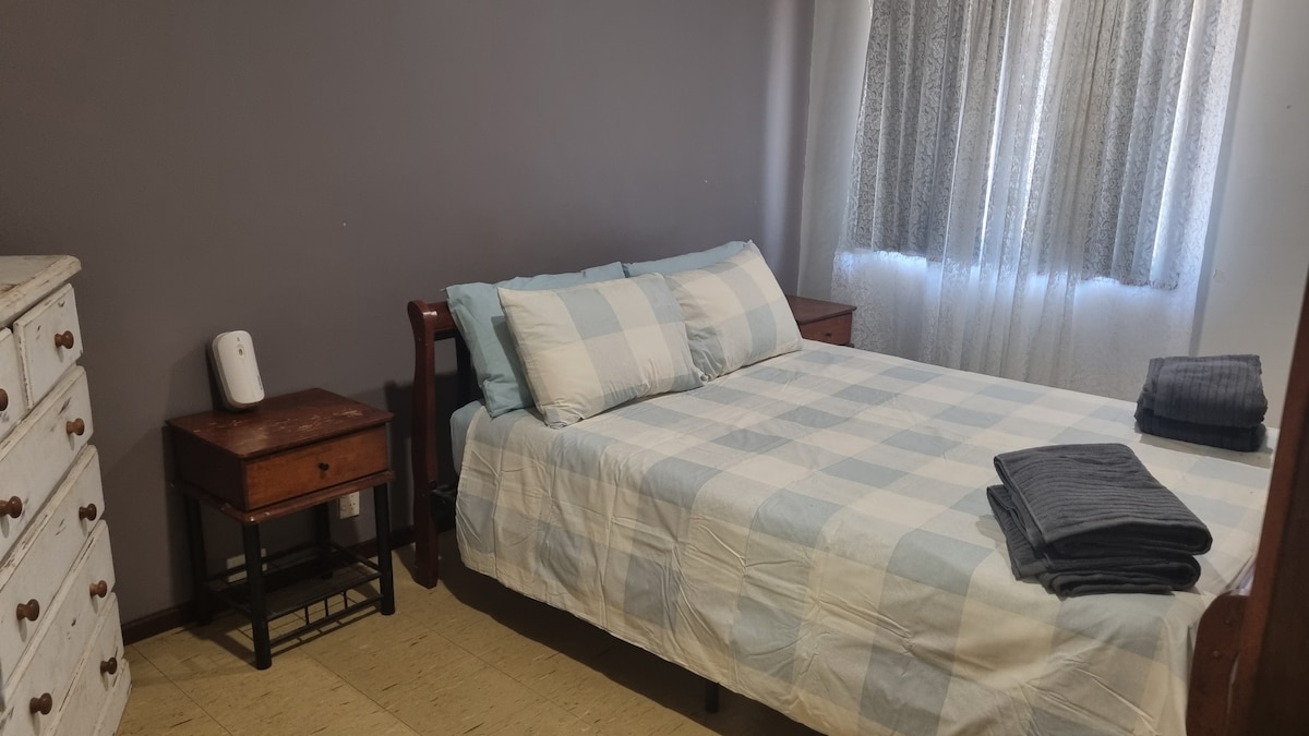 We have made available the master bedroom in Alisons 3 bedroom apartment. The room is large and spacious with its own connected bathroom and shared toilet. You will share with 2 others "Alison" owner occupier and one other worker who assists with co-hosting both are easy-going and very hospitable to make your stay enjoyable. You will have own car space, fridge and access to all kitchen and lounge etc. Please note car space may not accommodate larger vehicles but there is other parking available