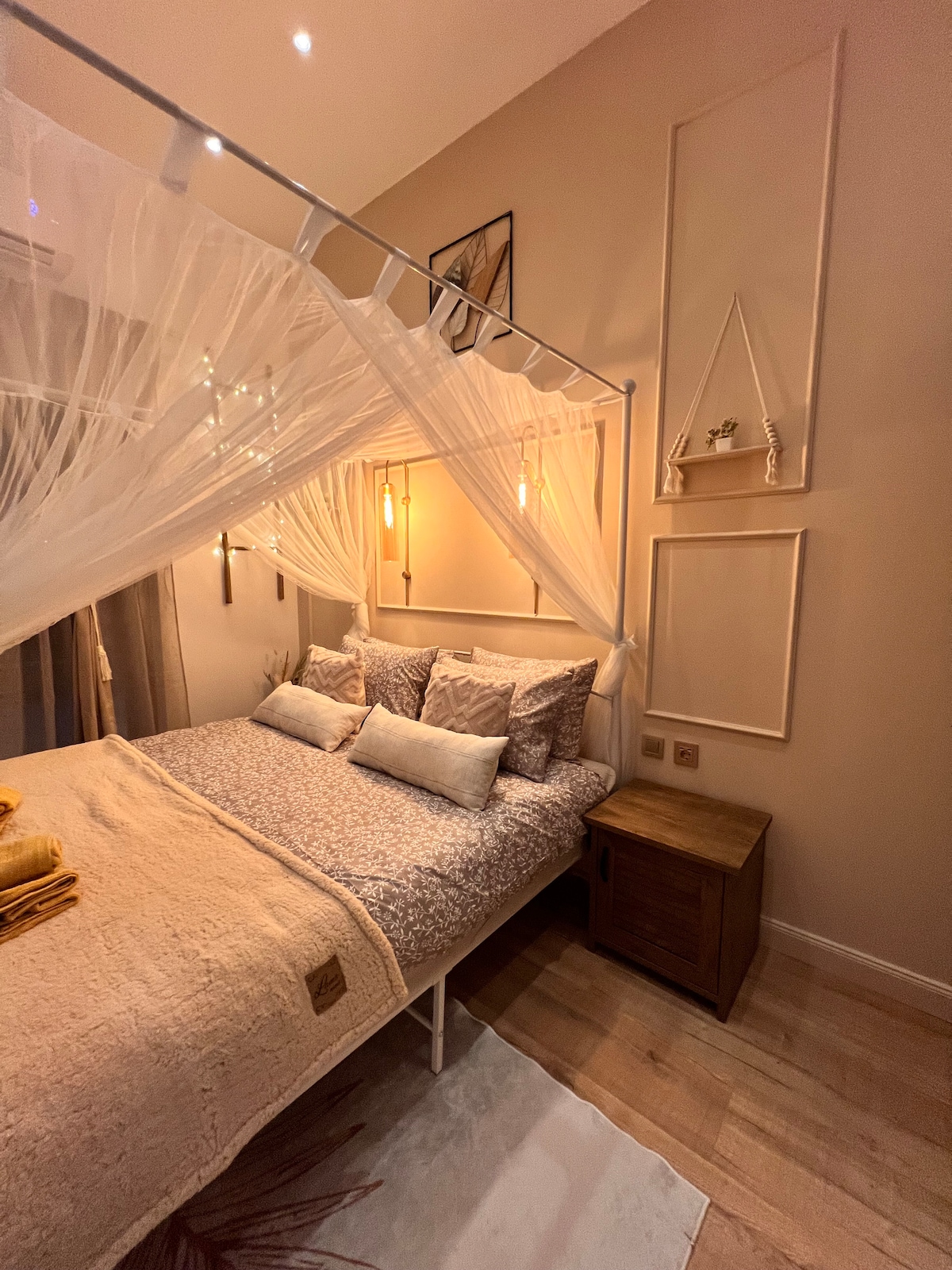 Welcome to our brand new luxury apartment in Bansko, nestled amidst the breathtaking Pirin mountain range. Immerse yourself in a unique cave-inspired retreat adorned with rustic stones and warm wood accents. The double bed promises ultimate comfort, while hidden LED lights create a magical ambiance. Experience a seamless blend of nature and opulence, with panoramic views of Bansko's ski resort. Your mountain escape awaits, where every detail whispers tranquility and elegance