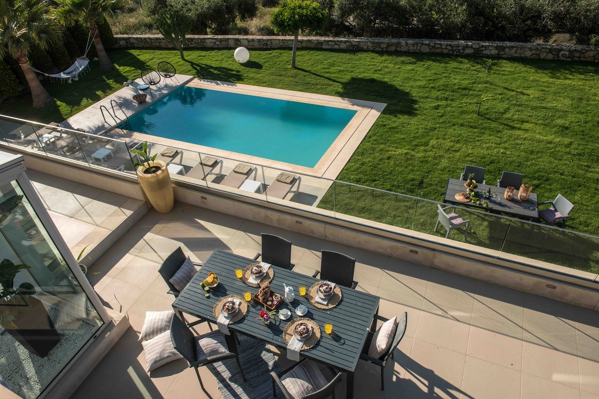 Villa Bella Elena is a white modern villa with unparalleled luxury and style, located just 10 minutes from the city of Heraklion, on the hillside of Vrachokipos and is a top choice for those looking for the best place for a pleasant and relaxing holiday in absolute tranquility. The view from the house of the endless blue of the Cretan Sea and the island of Dia, is sure to remain an unforgettable memory to every visitor.