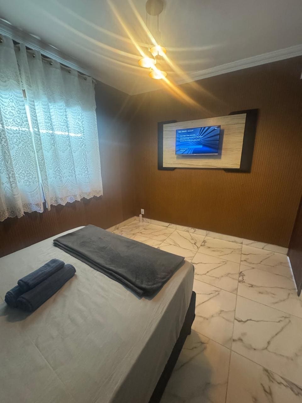 ✨ Suíte Sanguinetti Spa – Clima de Cachoeira Suíte totalmente reformada, com novos revestimentos, pintura nova, chuveiro duplo e ambiente moderno e aconchegante, inspirada na natureza para proporcionar uma experiência única de relaxamento. Experiência completa: • Hidro ampla para relaxar • Chuveiro duplo • Espaço exclusivo • Ambiente temático • TV 75” e 55” Perfeito para casais que querem sair da rotina e viver momentos especiais, seja para relaxar, comemorar ou simplesmente curtir juntos.