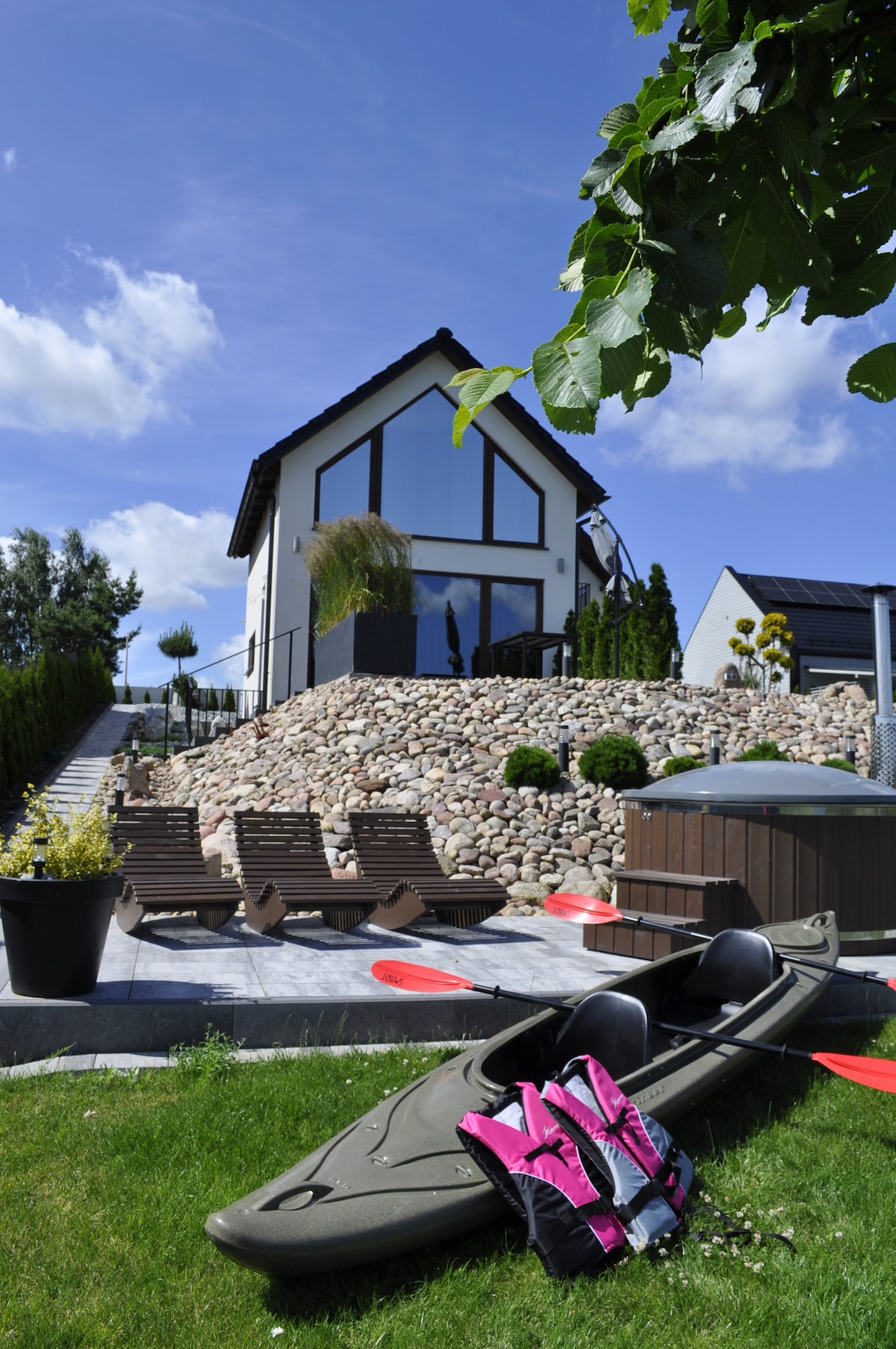 The Bielawy House has been specially designed for relaxation. It features a modern, chlorine-free (active oxygen) heated pool with a massage bench, a 6-person jacuzzi, and a high-quality sauna. The spacious garden includes a playground, ping pong table, monkey bars, trampoline, and volleyball court! Inside the house, guests can relax by the fireplace, play table soccer, Xbox, or poker. The well equipped kitchen provides ideal conditions for cooking. Nearby, there are beautiful lakes and forests