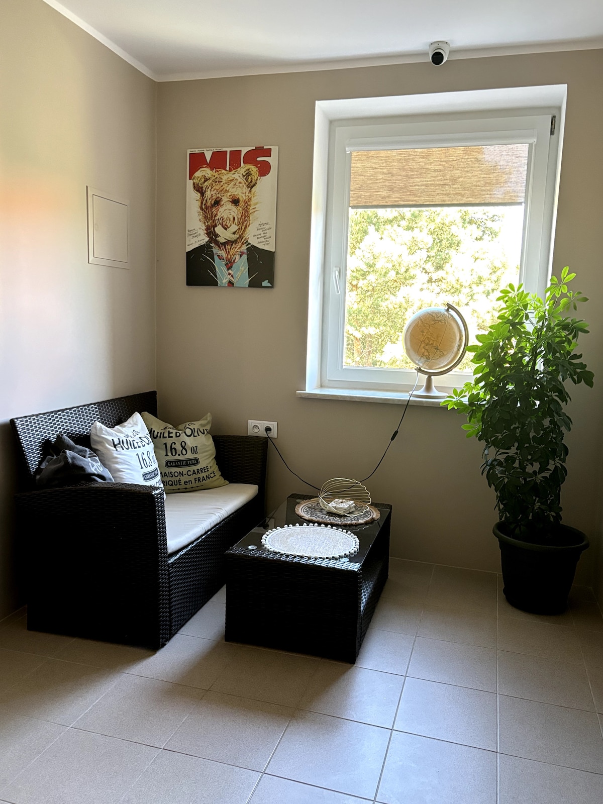 The Bielawy House has been specially designed for relaxation. It features a modern, chlorine-free (active oxygen) heated pool with a massage bench, a 6-person jacuzzi, and a high-quality sauna. The spacious garden includes a playground, ping pong table, monkey bars, trampoline, and volleyball court! Inside the house, guests can relax by the fireplace, play table soccer, Xbox, or poker. The well equipped kitchen provides ideal conditions for cooking. Nearby, there are beautiful lakes and forests