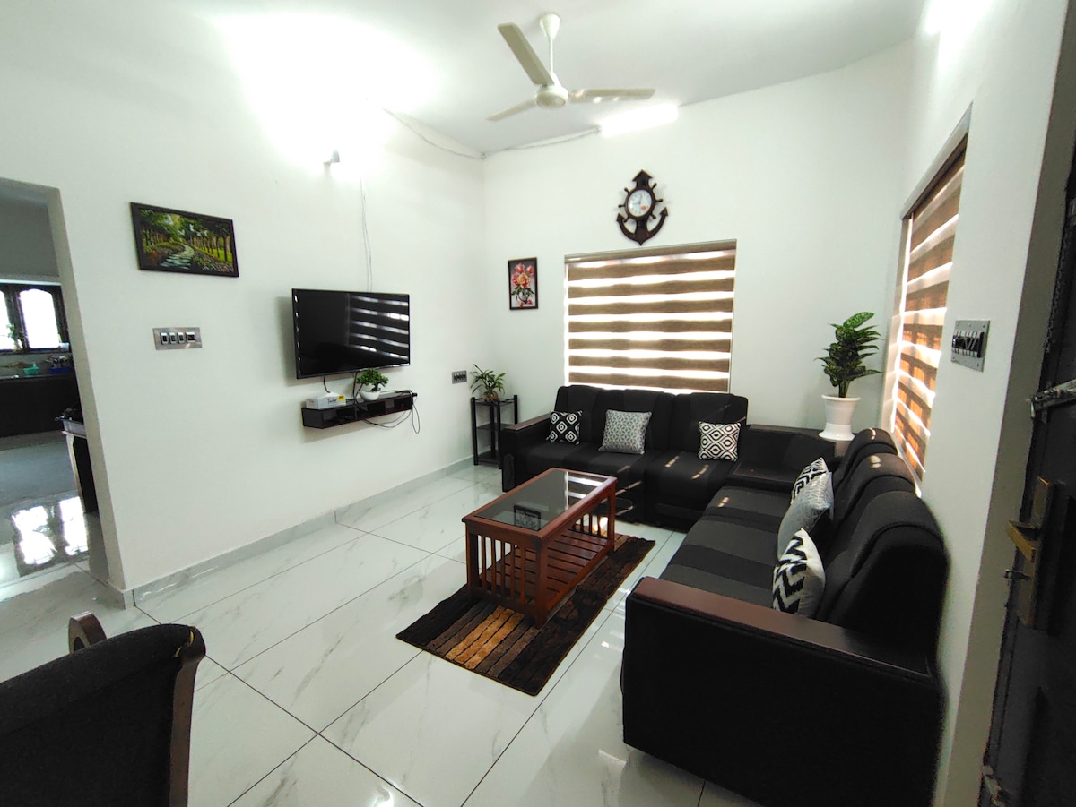 Welcome to your ideal HOME-Away-From-HOME. - ONLY for FAMILIES seeking comfort, convenience, and tranquility. - Just 3.5 km from Kochi Int’l Airport. ultra‑convenient for arrivals/departures. - 3 bedrooms, each with an attached bathroom. - Fully equipped kitchen – Includes fridge, stove, kettle, oven, and washing machine perfect for family meals and light cooking. - Peaceful, family‑oriented neighborhood. - Close to tourist spots, Hospitals and essentials. - Ample parking facility.