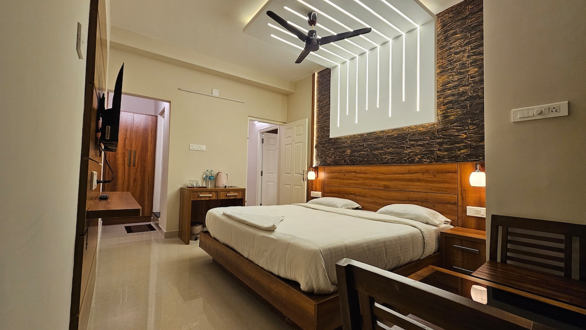Touchdown by Nebz360 is a premium 2BR apartment just 3 mins from Cochin Intl. Airport. Enjoy a fully air-conditioned space with 2 king beds , 2 bathrooms, 2 balconies with automated lights, smart TV, fast Wi-Fi, and a kitchenette with beverage starter kit. Includes access to a rooftop pool (7 AM–7 PM), self check-in, free parking, elevator, and wheelchair access. Essentials provided. Close to metro and railway stations for easy travel. Smoking allowed only in balcony.