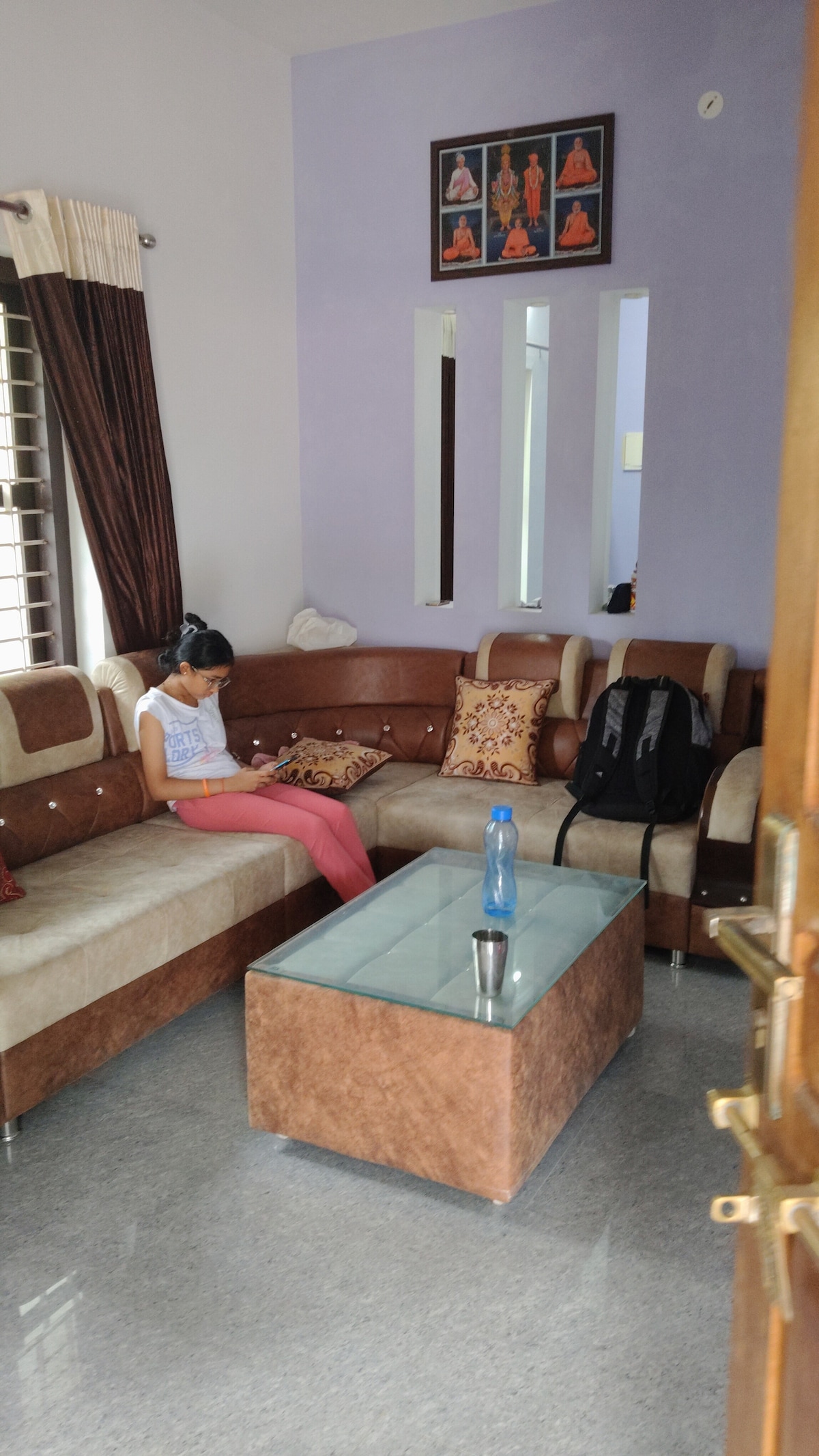 The house has two double Bed rooms with A.C. and attached bathrooms; one with water heater,& a common bath room.Extra double mattress available in one bed room. Spacious hall has dining table with 6 chairs, sofa set and a diwan. Kitchen with work area has fridge, water purifier, cooking facilities etc.Corridor leading to Pooja room and a patio by the side of a central courtyard are ideal for relaxation. All are well ventilated with mosquito nets and for exclusive use of guests.