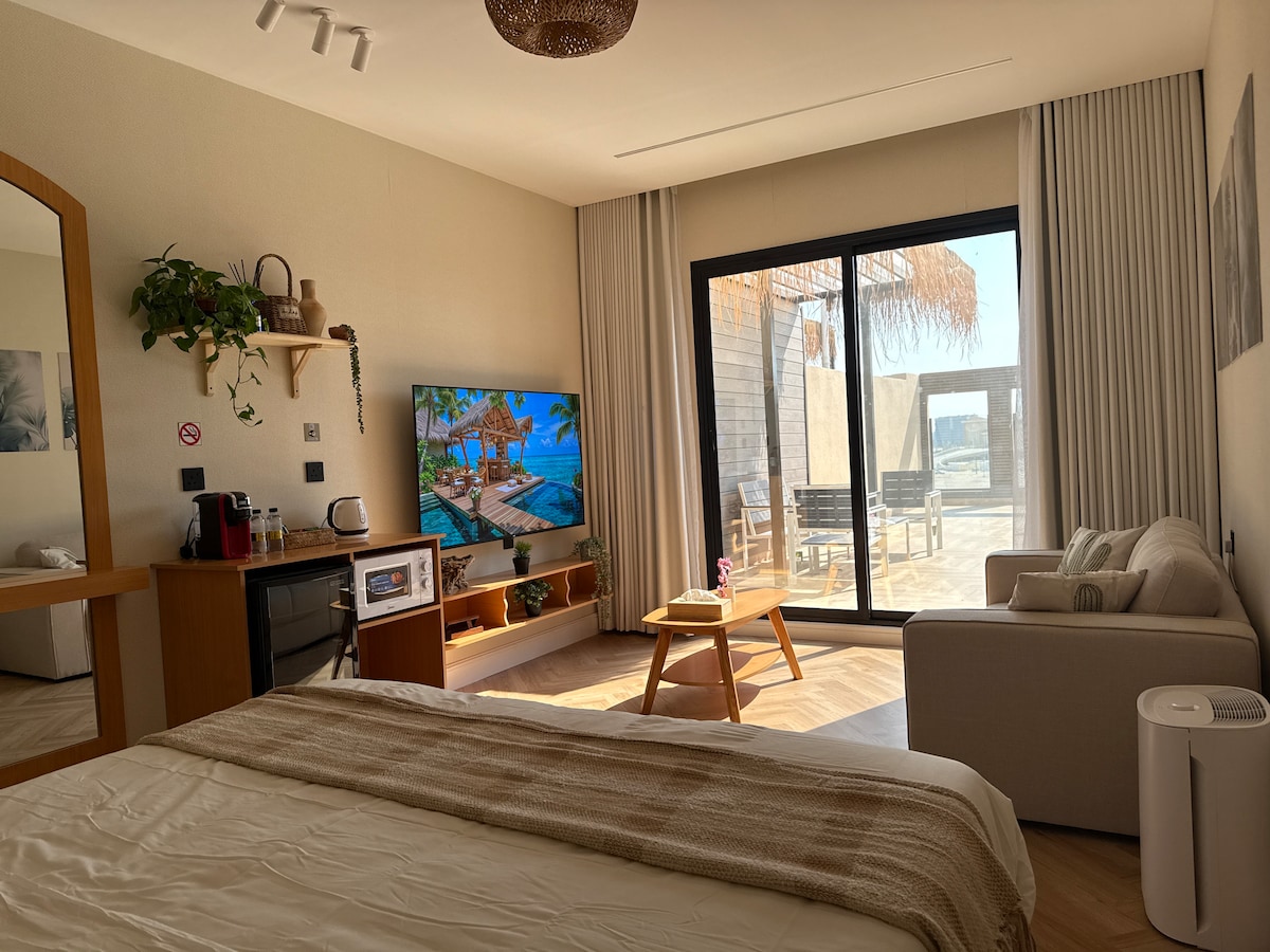 The studio offers an unmatched blend of luxury and sophistication, providing top-tier service and amenities in the area. Guests can enjoy a kids' playground, playroom, arcade room, and an indoor cinema with Friday screenings. Other facilities include a fully equipped gym, sauna, steam room, pool, Jacuzzi, prayer room, and a versatile multipurpose hall for events. Conveniently located, the studio is close to major tourist attractions, making it an ideal spot for both relaxation and convenience.