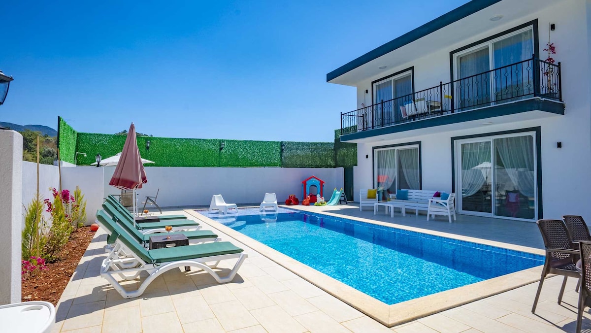 Villamız Kalkan Sarıbelen bölgesinde doğa ile iç içe şehir merkezine yaklaşık 12 km uzaklıkta olması sebebiyle mükemmel bir konuma sahiptir. Modern mimarisi,özel korunaklı havuzu , geniş ve zevkli aktivitelerle dolu bahçesi ile birlikte jakuzi hizmetimiz sayesinde muhteşem zaman geçirmeniz için özenle tasarlanan villamız 4 kişilik kapasitesiyle hem muhafazakar hem de çocuklu aileler için çok iyi bir seçenek olmasının yanı sıra balayı çiftleri içinde muhteşem bir seçim olacaktır.05462177077