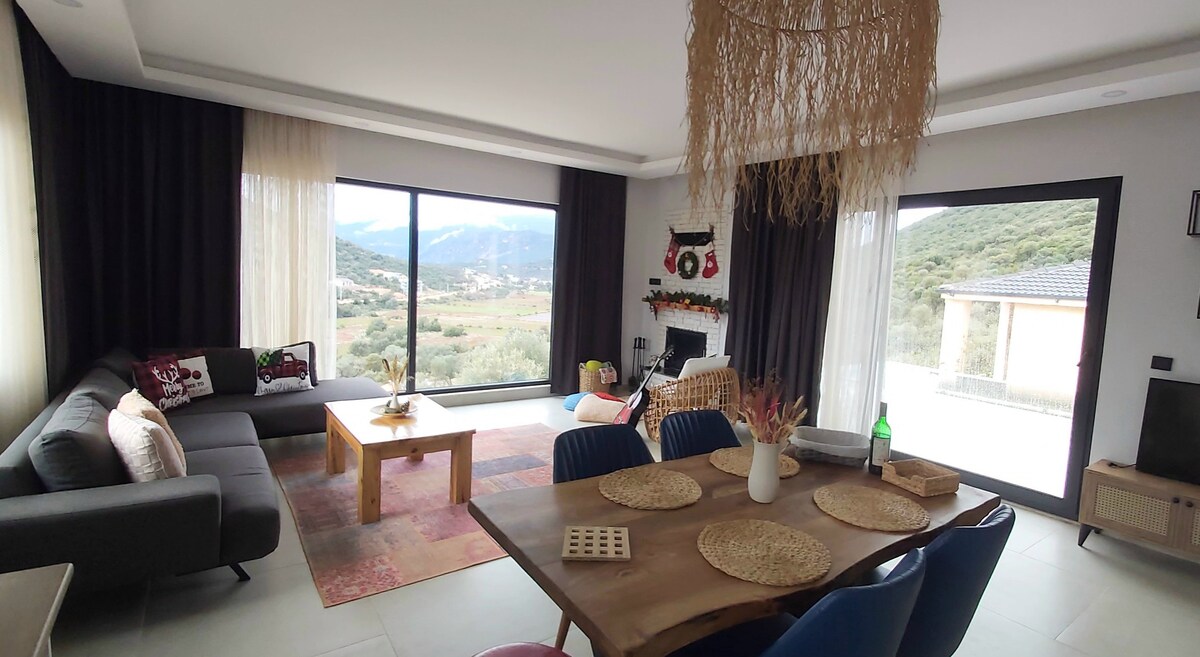 Kaş,panoramik orman manzarası ve şöminen yanında