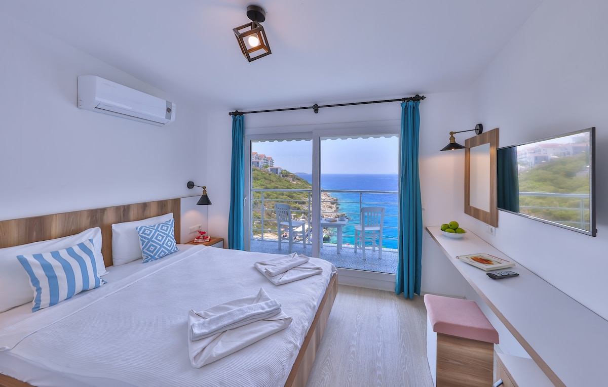 Begonvillerle çevrili dar sokakları ve maviliğin binbir tonuna sahip koylarıyla Akdenizin ve Egenin tam ortasında bulunan bu gizli liman kasabasına hoş geldiniz. Apartımız siz değerli misafirlerimize iyi bir hizmet vermek ve ev sıcaklığında bir konfor sunmak için 2019 yılında hizmete açılmıştır. Doğal şık ve modern konseptiyle tasarladığımız apartımız KAŞ merkezinde sahile sadece 5 dakikalık yürüme mesafesiyle sizlere unutulmaz bir tatil fırsatı sunuyor.odamız full deniz manzaralı bir odadır.
