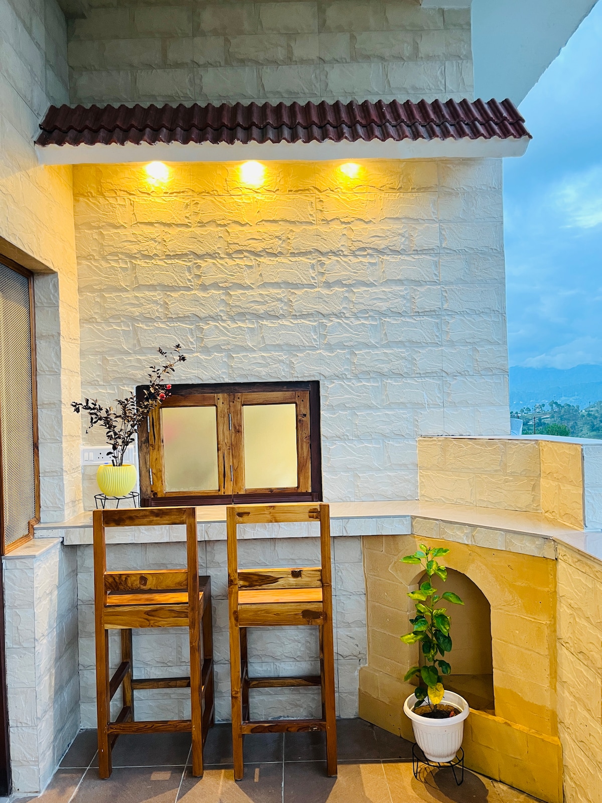 Wake Up in the Clouds – A Private Escape with 180 degree Himalayan Panorama. Pluck an Apple right from the comfort of your Balcony. Tucked away in the beautiful village of Shasbani in the serene hills of Mukteshwar, this private cottage offers an unrivaled front-row seat to the mighty Himalayas. Imagine waking up to seven layers of rolling hills, the sun rising over snow-draped peaks like Nanda Devi and Trishul, and a vast, uninterrupted skyline that stretches as far as the eye can see.