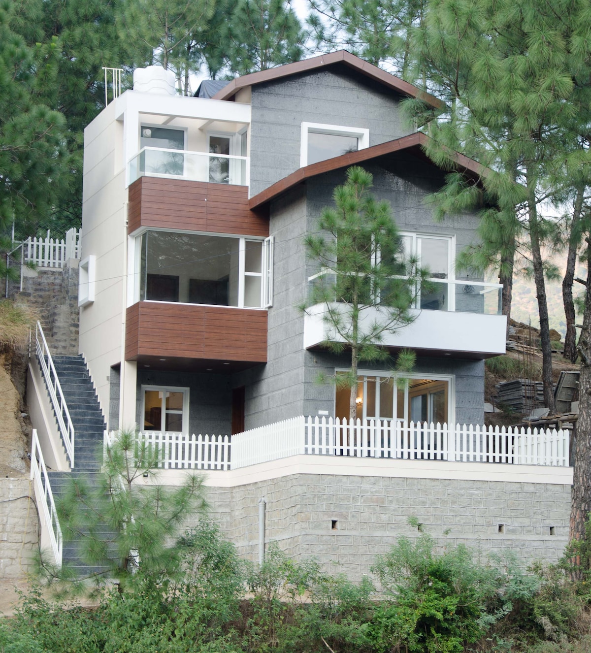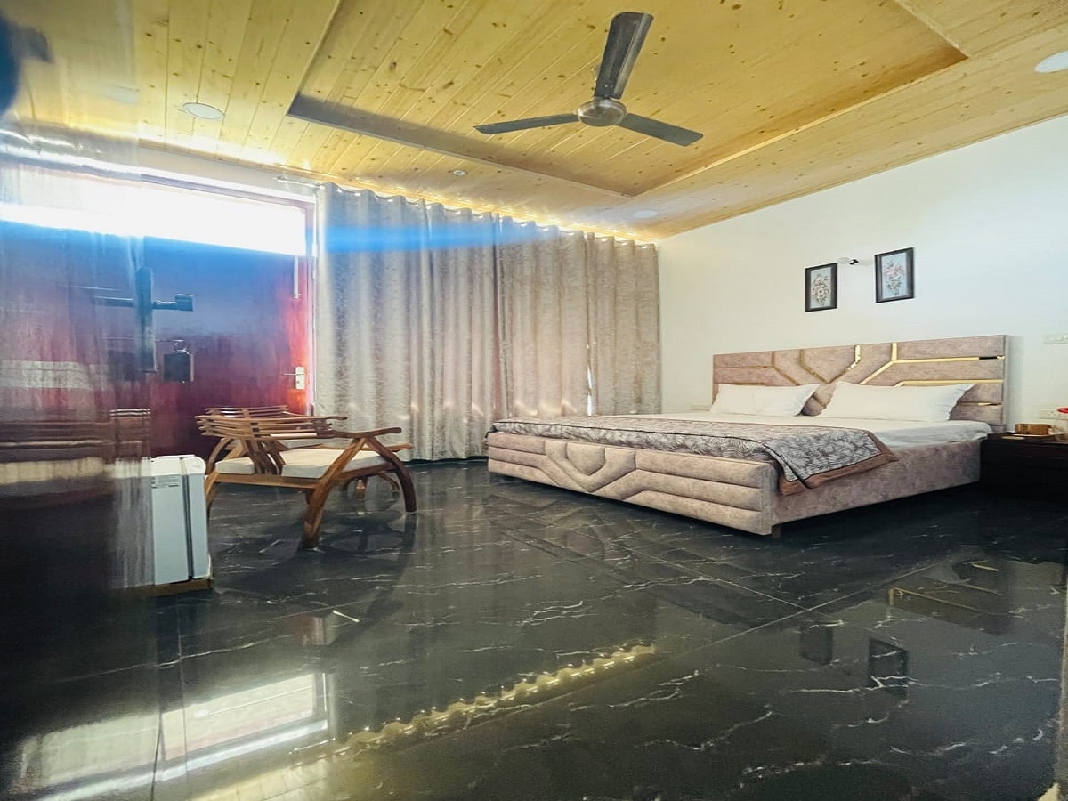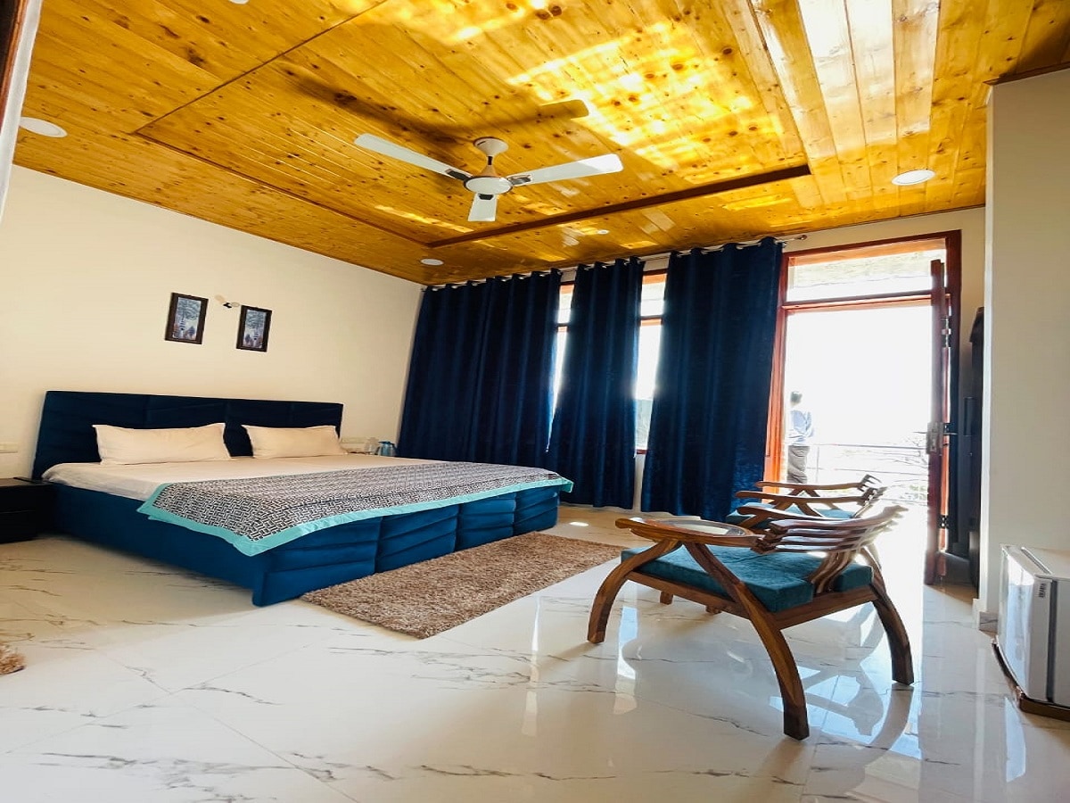 Stone-themed classic cottages equipped with air conditioning, bathtubs, and private balconies offering breathtaking panoramic views of the Himalayan ranges.