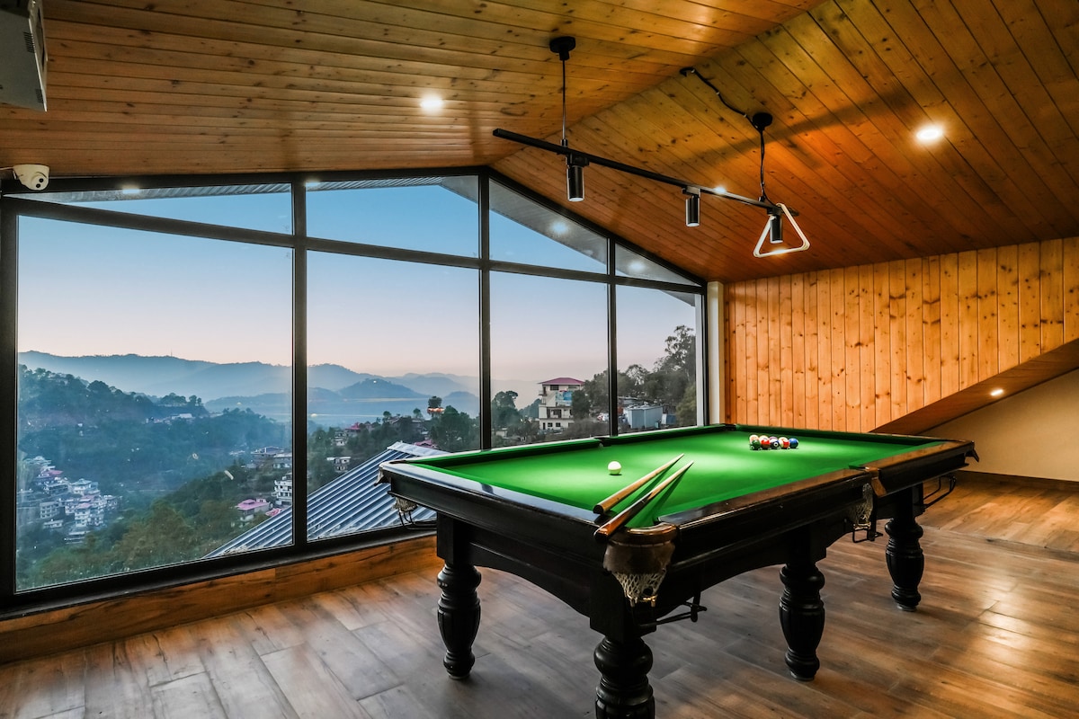 Welcome to The Vivaak - a Luxurious 6 Bedroom Villa, a short drive from Kasauli and away from the tourist crowd! ★ Complimentary Breakfast ★ Roll Down Projector Screen/Home Theater ★ T.T Table, Foosball Table, Indoor Games ★ Expansive 16,000 sq. ft. villa ★ Welcome Basket on arrival ★ 6 Stylish Bedrooms- Attached Balconies & Ensuite Washrooms ★ Heated Pool (Kids + Adults) ★ 5 Seater Jacuzzi (Room Temp) ★ Deck Area to Catch Beautiful Sunset ★ Senior Citizen Friendly & Wheel-Chair Accessible