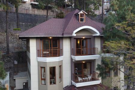 *Enjoy IPL on 120 inch private screen* Experience serenity at this 3BD premium villa with resort amenities, featuring spacious ensuite rooms, lush lawn, and scenic views of the shivalik hills. Enjoy farm-to-table dining, a sky parlor, Snooker game, TT, Home Cinema, outdoor living area with a view of the toy train from the property. Perfect for families, couples and pet lovers. A combination of luxury and tranquility. Located at Dharampur, just 25 min drive to Kasauli Mall Road.