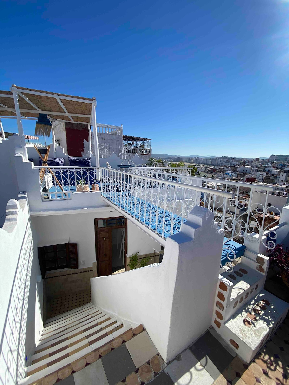 Welcome to our beautiful three floors house located inside the Old Medina of Tanger with sea and city views from our terrace. This house is the perfect choice for travelers who want to experience the authentic charm and culture of the city while also enjoying comfort. The location of this house is unbeatable - it's right in the heart of the Medina, close to restaurants, shops, and attractions. We can't wait to welcome you to our beautiful house „La Noura“! Please read our property description