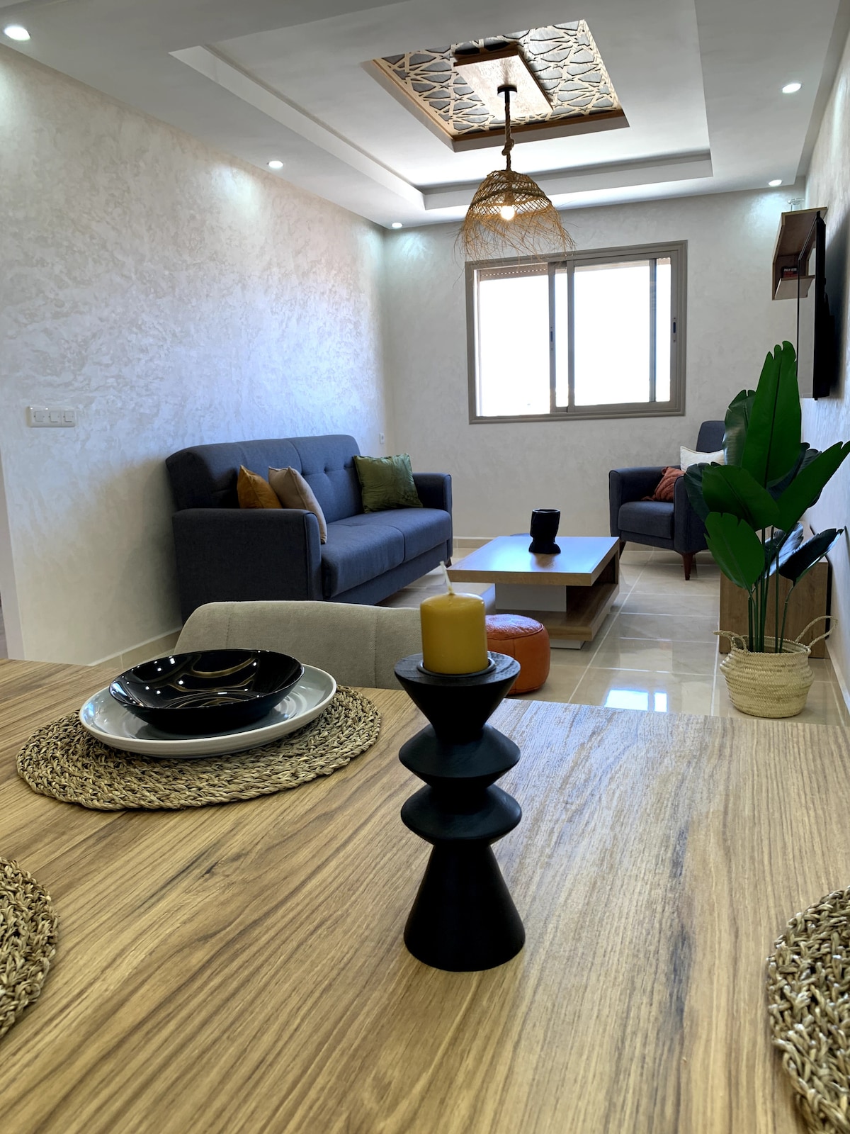 Welcome to our luxurious apartment in Mehdia Beach, where comfort meet seaside elegance. - 𝐋𝐨𝐜𝐚𝐭𝐢𝐨𝐧: Just steps away from the beach, our apartment offers easy access to Mehdia's vibrant seaside attractions. - 𝐂𝐨𝐦𝐟𝐨𝐫𝐭: Our apartment accommodates up to four guests, with a bedroom featuring either a queen-size bed or two single beds, plus two sofas in the living room. - 𝐒𝐞𝐥𝐟 𝐂𝐡𝐞𝐜𝐤-𝐈𝐧: with our unique access code system, allowing you to check in at your convenience.