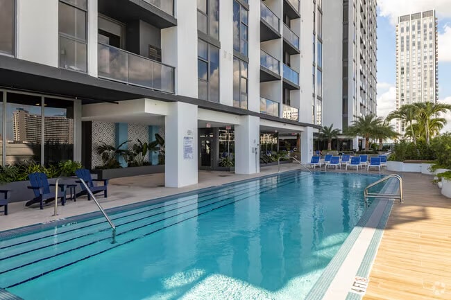 New Condo, inside a modern hotel tower, enjoy the hotel-like amenities: pool, jacuzzi, (14th floor), gym, restaurant, grab & go coffee shop, bar, co-working, valet parking for a fee. One bedroom apartment, bathroom, full kitchen, living and dining areas, tv, wi-fi, washer, dryer. Close distance to Miami lively neighborhoods: Brickell, Coconut Grove, Design District, Wynwood, Miami/South Beach. Prime location, Malls: Bayside, Brickell Centre, Venues: Bayfront, FTX, Arsht Center, Museums: Frost