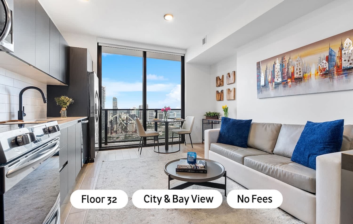 Stay in a luxury high-rise on the 31st of 32 floors with one of the best views in the building. Enjoy floor-to-ceiling windows, modern design, and the full Miami experience. The building features an 18th-floor pool with city views, a gym overlooking the skyline, and a stylish lobby with a coffee shop. Walk across the street to Bayfront Park, or reach Brickell, Wynwood, and Miami Beach in minutes. The perfect spot for your Miami stay