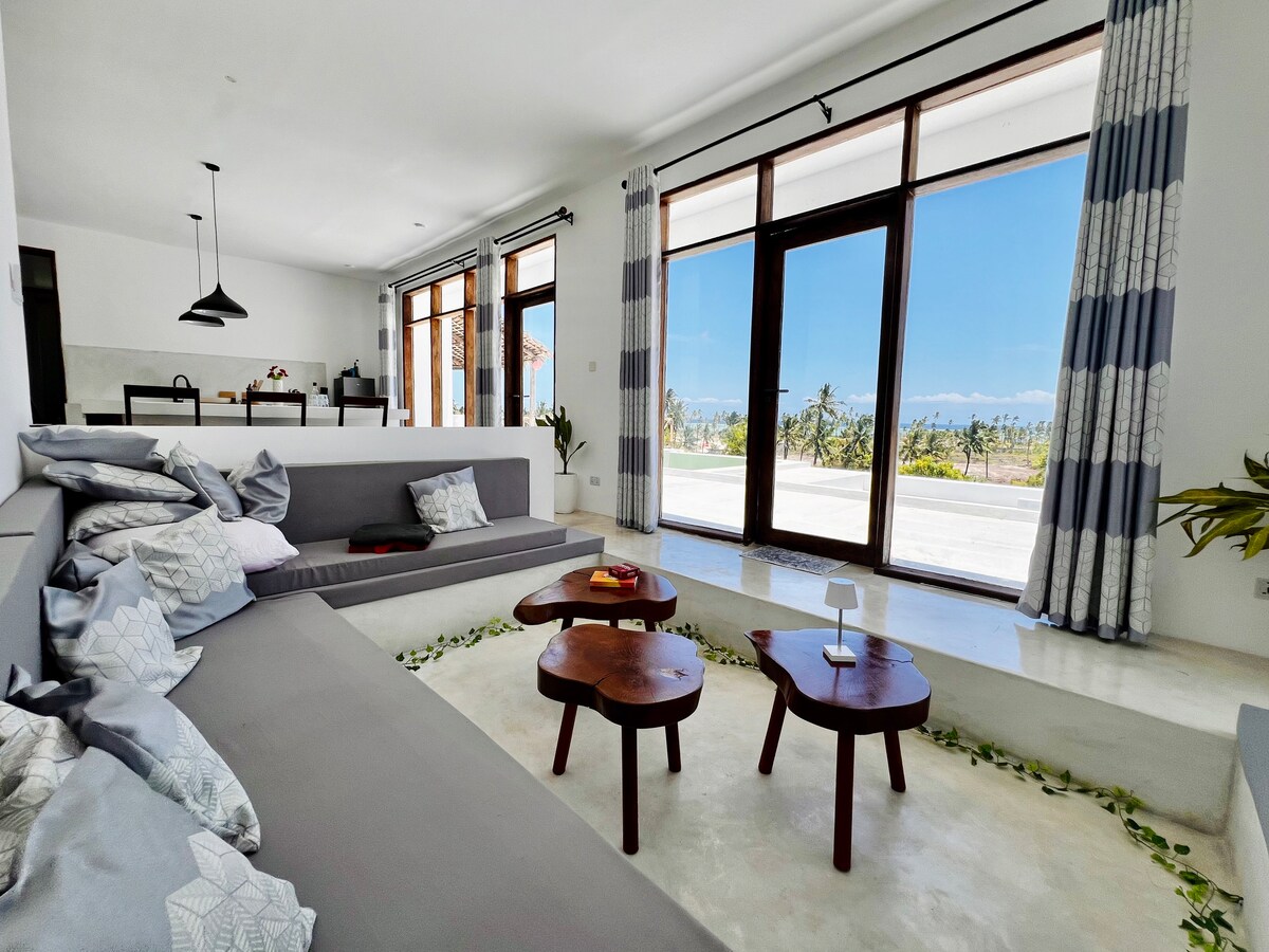 Exclusive Beach Front design Apartment on the breathtaking island of Zanzibar, located on the pristine white sand beach of Kiwengwa with Direct beach access. The apartment features a harmonious blend of African and Italian décor. 200 sqm Private Patio offering a unique view of turquoise ocean and white sandbank Your stay includes: a daily freshly prepared breakfast, daily housekeeping service, Private Concierge , Private Chef, a la carte menu, 35 KWA new generator, AC & unlimited fast Wi-Fi