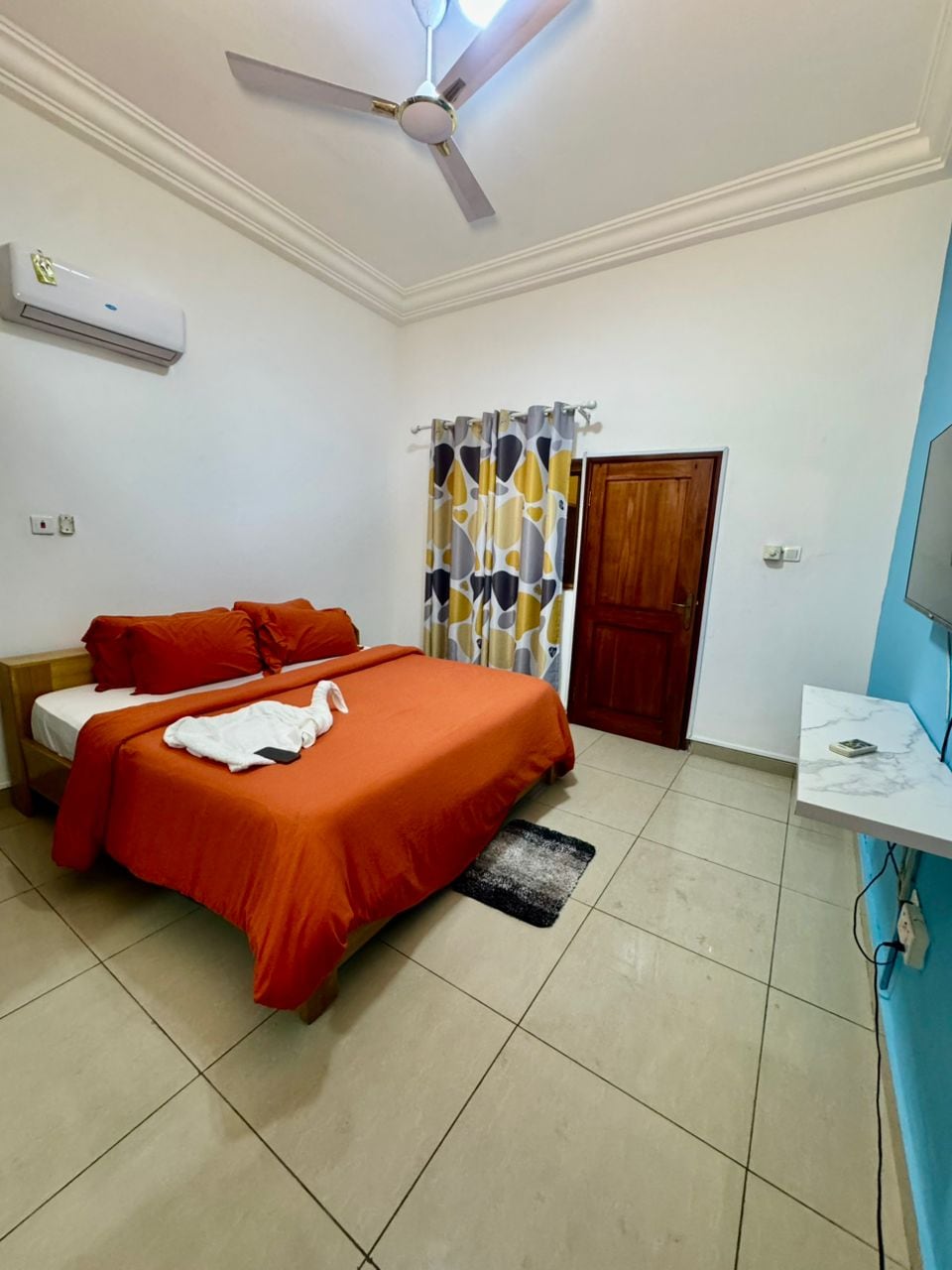 Superhost Reggie’s Home Includes: 🛫 FREE Airport Pickup & Drop-off 🚗 FREE Car & Driver (fuel on you; extra fees for trips outside Accra) 🍳 FREE Cook (groceries not included) 🥞 FREE Breakfast (tea, coffee, pancakes, eggs, waffles, oats, porridge) 🕛 FREE Late Checkout 🏡 Gated Community, 24/7 Security 🛌 2 Bedrooms, 1.5 Baths, Fully Air-Conditioned 📶 FREE Starlink WiFi, Netflix, IPTV 🔌 Universal Electrical Sockets 🏋️ Gym & Pool (extra fee) Perfect for a worry-free stay in Accra