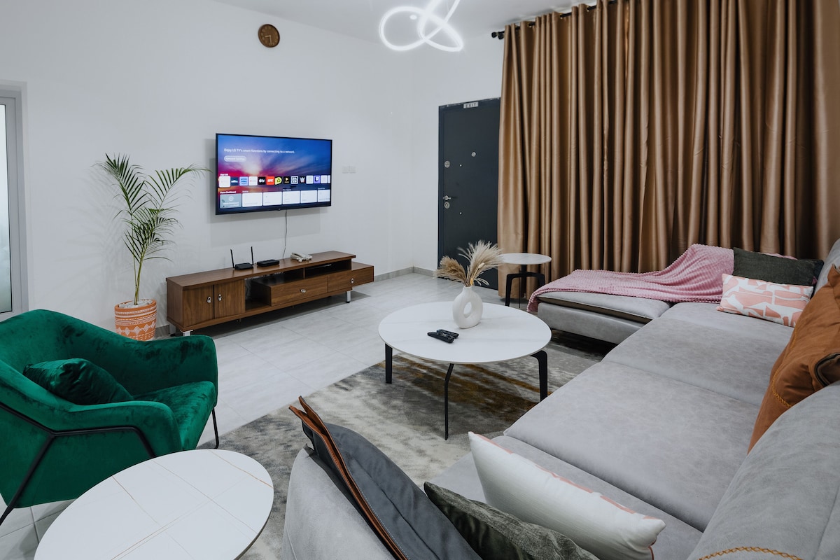 This Mid-Century Modern themed apartment resides in a newly built apartment complex at East Airport in Accra. It sleeps 4 in 2 rooms with a primary ensuite. It is centrally located within 8-13 minutes of The Kotoka International Airport, Palace Shopping Mall and The Accra Mall. The Avery Apartment at Odomaa Place is a gem of a find with excellent customer support. Serene environment in the heart of the city.