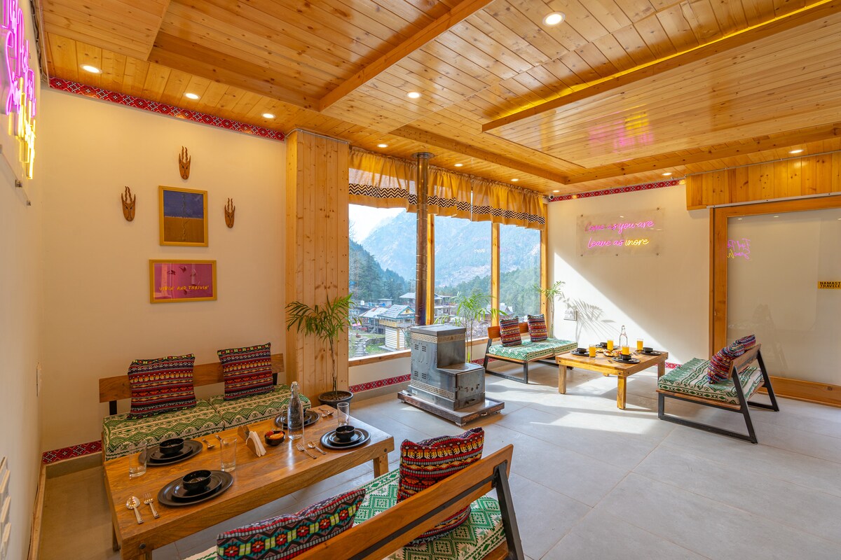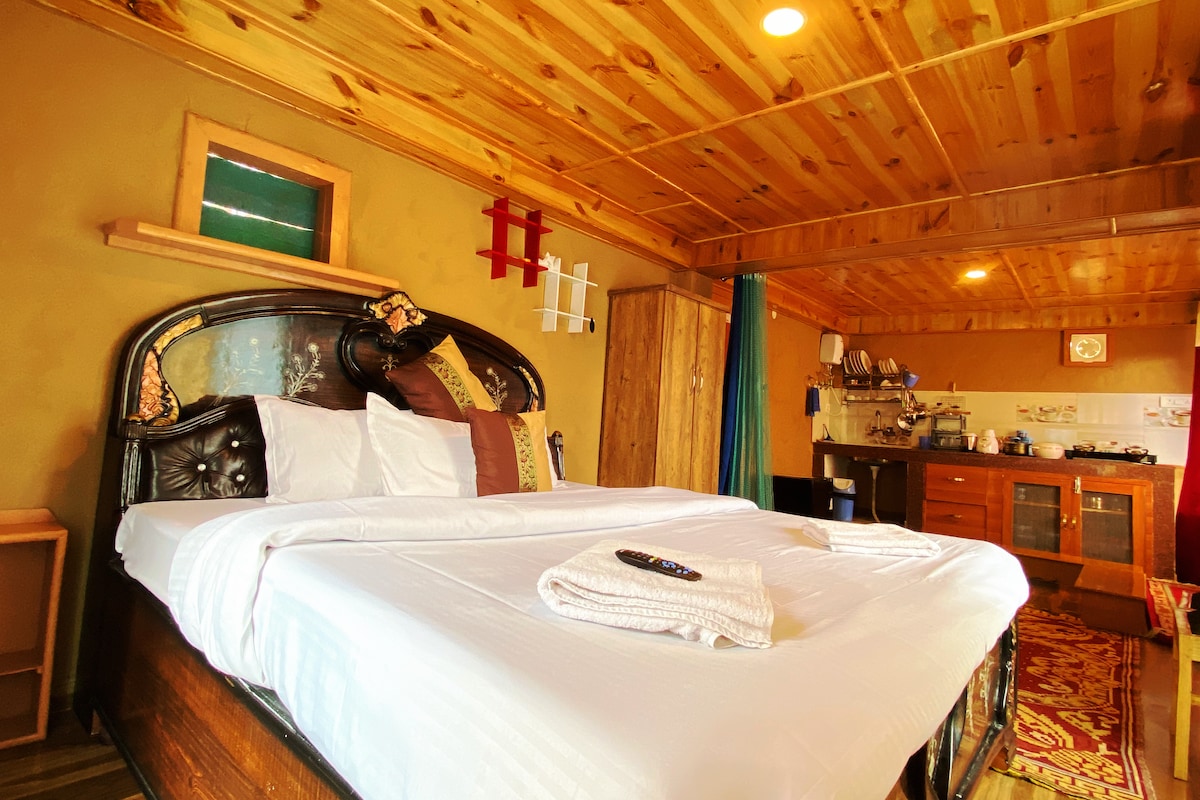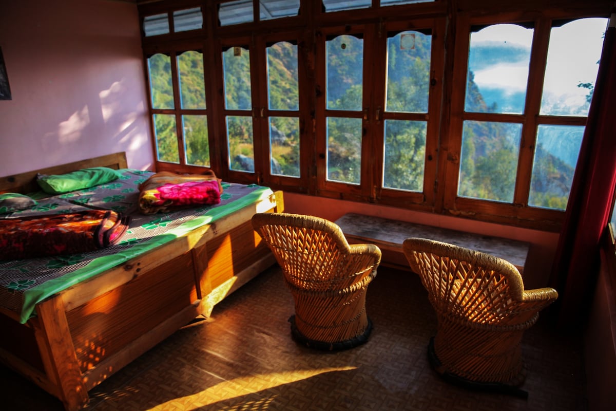 Have fun with the whole family at this stylish place. You will have spacious and Luxury Duplex chalet suitable for one couple or a family of four guests. ★ Master bedroom & attic ★ Wooden & Stone Architecture ★ Panoramic Valley view ★ Nearby Paragliding site ★ Bathtub ★ Power backup ★ WiFi ★ Indoor Fireplace ★ in-house food service ★ Garden & Bonfire area Please note : - Breakfast, Meals, Room heaters, Firewood, & all other services are exclusive of stay price here