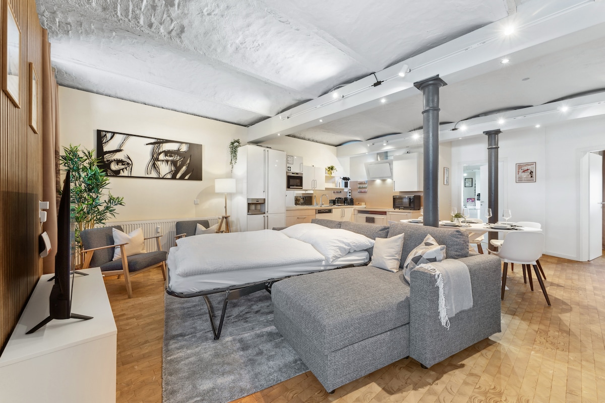 Willkommen bei HAIM2 Apartments & unserem stilvollen URBAN LOFT Göttingen. → 90m² Apartment mit Platz für bis zu 8 Gäste → 2 Schlafzimmer mit Queen-/Kingsize-Betten & Smart-TV → Wohnbereich mit Schlafcouch & Smart-TV → Vollausgestattete Küche mit Geschirrspüler → Badezimmer mit großer Dusche & Waschtrockner → gemütliche Terrasse mit Sitzecke → 2 kostenlose Parkplätze direkt vor dem Apartment → Kostenloses Streaming (Magenta TV, Netflix, Disney+, RTL+) → Bequemer Self-Check-In per Türcode
