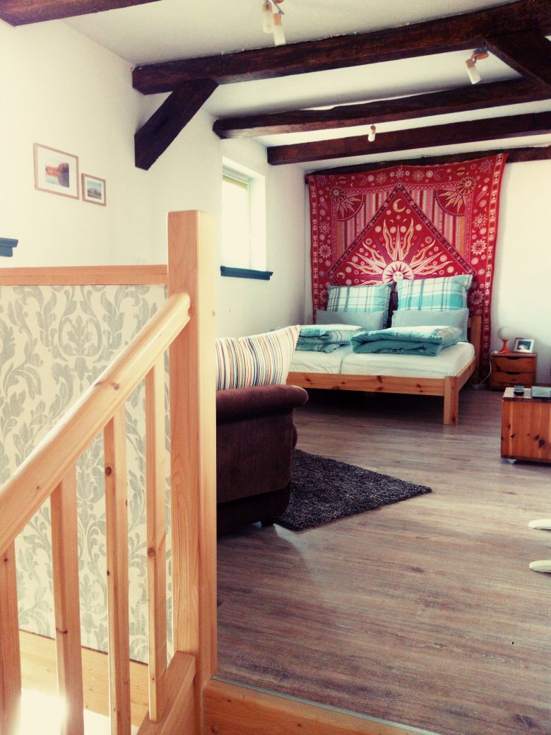 Diese ca 37qm große, gemütliche Wohnung ist mit viel Liebe u. ganz viel natürlichen Baumaterialien renoviert worden, so dass der Charme, den so ein altes Haus ausstrahlen kann, nicht verloren ging. Sie bietet den Gästen ein urgemütliches Ambiente in einem idyllischem Gartenparadies. Direkt vor dem Haus stehen den Gästen kostenlose Parkplätze zur Verfügung. Auch können Fahrräder ausgeliehen werden. Diverse Einkaufsmöglichkeiten befinden sich in unmittelbarer Nähe und sind fußläufig zu erreichen.