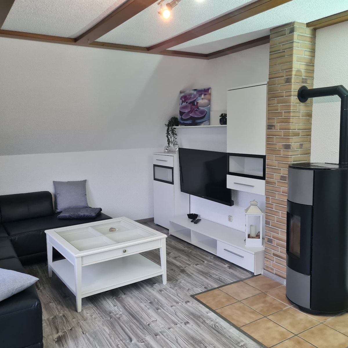 Welcome to our Himmelsstürmer Apartments! This modern apartment features large windows, stylish design, and plenty of light. The living area sofa can be converted into an extra bed. The kitchen and bathroom are fully equipped, and the bedroom’s box-spring bed with blackout curtains ensures restful sleep. High-speed Wi-Fi, HD TV with Netflix & Disney+, towels and parking complete your stay.