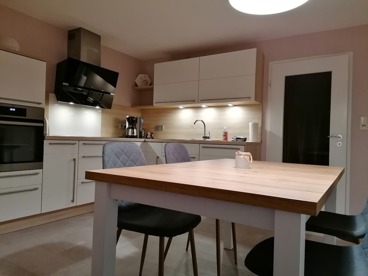 Ontspan en kom tot rust in deze vredige, stijlvolle ruimte. Ervaar de schoonheid rondom de Edersee. Middenin het toeristische Waldeck. Wandelpaden direct achter het huis. Restaurants om de hoek en slot Waldeck aan het einde van de straat. De gasten van dit appartement kunnen gebruikmaken van een terras aan de achterkant van het huis. De tuin is uitsluitend voor de gasten van het 9 persoons appartement ! Ons huis heeft 2 appartementen, 9 persoons en 4 persoons appartementen. Zie onze andere adv.
