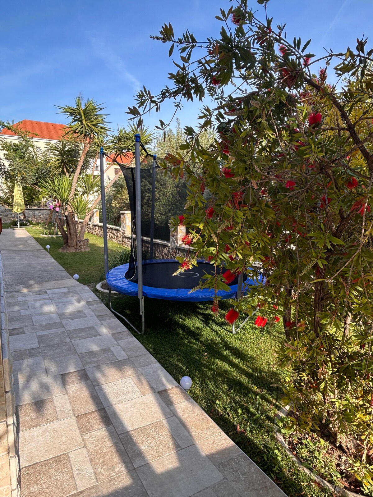 VILLA TISSA with big heated swimming pool, jacuzzi, big garden,free private parking, infrared sauna, mini gym, table tennis and park for the kids with trampoline, swings, toboggan, playstation 4.. House consists of 2 connected objects, fully equipped with a beautiful view at the sea, local islands and mountain from the north side, free Wifi internet connection...