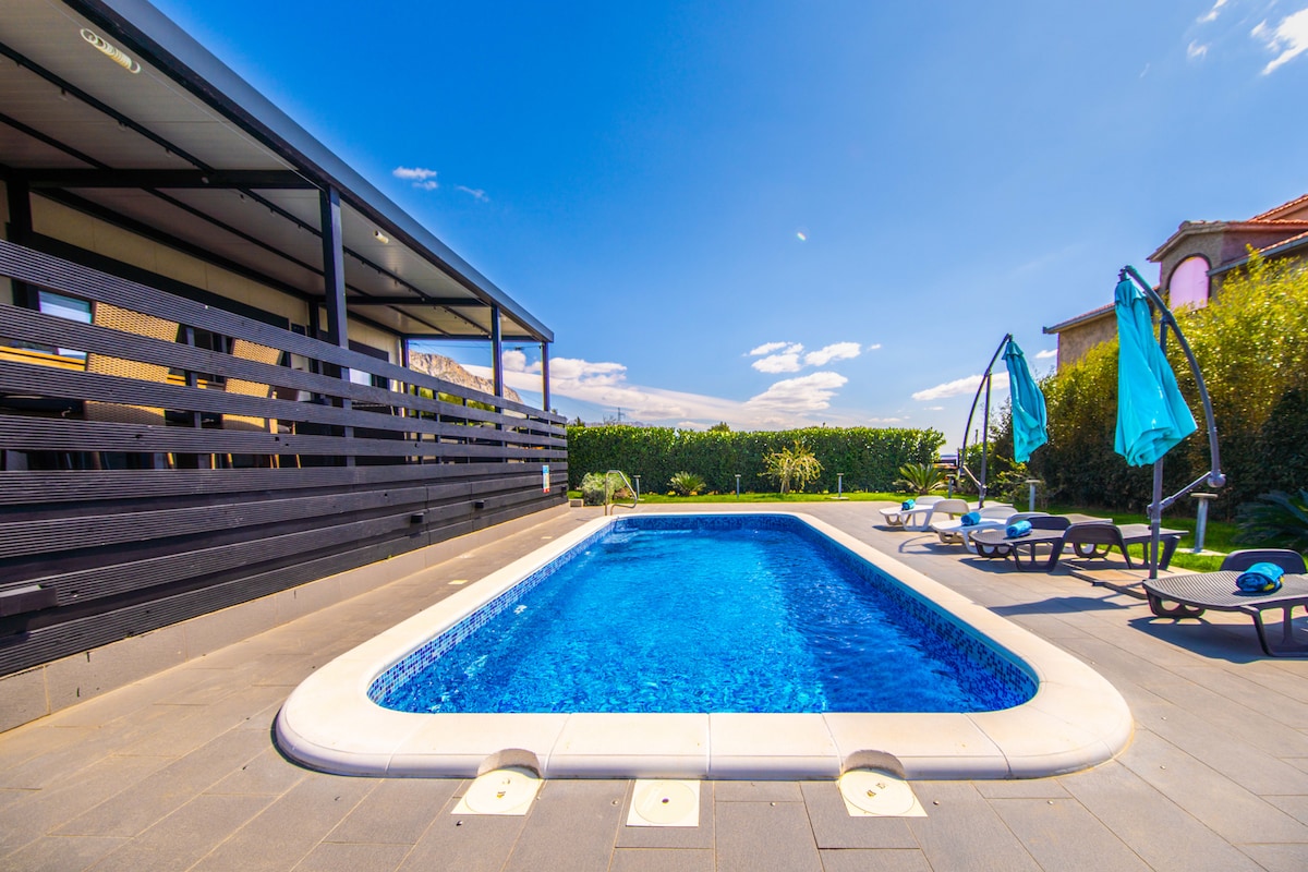 Great location, beautiful view , and comfort accommodation in a modern house with heated swimming pool,hottub and large private yard. Placed in a quiet area surrounded with nature , just in the middle between cities Split and Trogir, and only 5 minutes ride from an airport, the house is in the center of everything and perfect for exploring Dalmatia. Pool heated from 1 May- 15 October