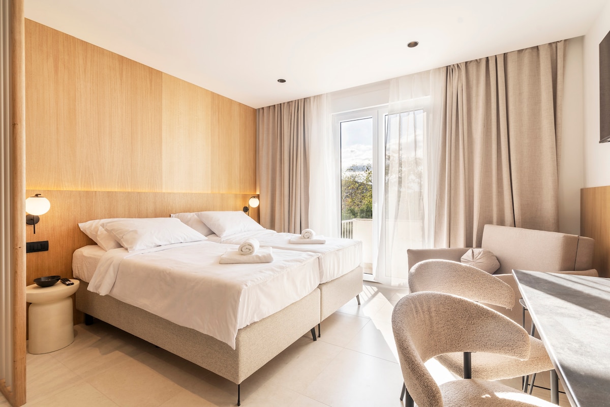 Immerse yourself in the tranquil ambiance of tastefully designed eclectic duplex. Throughout the flat, discover a harmonious mix of contrasting textures and patterns, accentuated by vibrant splashes of color and elegant French glass doors leading to the outside. After exploring the lively inner city of Split, unwind on the sundeck terrace with refreshing drinks. Experience the best of both worlds: the comfort and convenience of a hotel coupled with the privacy and coziness of a home.