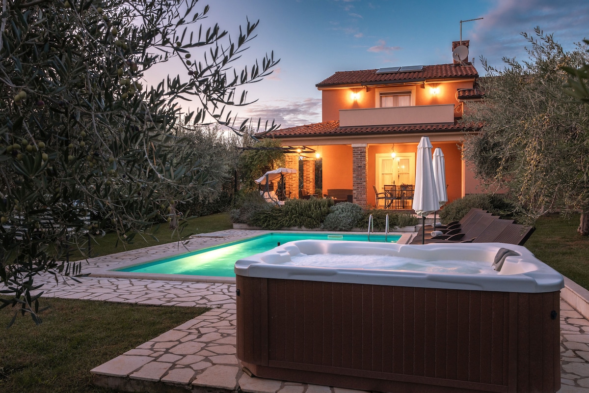Villa Euphoria is a 4-bedroom, 3-bathroom villa located in the peaceful town of Višnjan, less than 13 km from Poreč. Ideal for up to 8 guests, this villa offers a private pool, a sauna, and a jacuzzi with a sea view. Villa Euphoria is a great base for exploring Istria. Nearby attractions include Poreč (12,6 km), Novigrad (17 km), Rovinj (36,7 km).