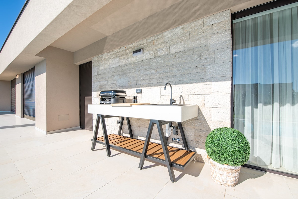 Villa Fiducia is a brand new, luxurious villa near Poreč, surrounded by olive groves and perfectly designed for your comfort. It has four bedrooms and four full bathrooms, one half-bathroom. It offers comfort and privacy year-round and it's the perfect retreat for families, friends or business stays in beautiful Istria.