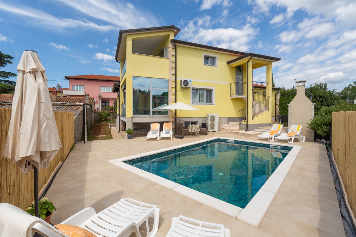 In der Nähe von Poreč, finden Sie die freistehende Villa SUN, mit Swimmingpool und Meerblick. Die 2025 fertiggestellte Villa SUN - eingerichtet mit Italienischen Designermöbeln, verteilt sich auf zwei Etagen. Ein besonderes Highlight ist die BBQ-Küche am Pool. Der Wohn- Essbereich lädt zu schönen Abenden ein. In den gemütlichen Schlafzimmern finden Sie erholsamen Schlaf und wachen mit Meerblick auf. Ein großer umzäunter Garten, für Kind und Hund zum spielen. E-Ladestation für Autos im Hof.