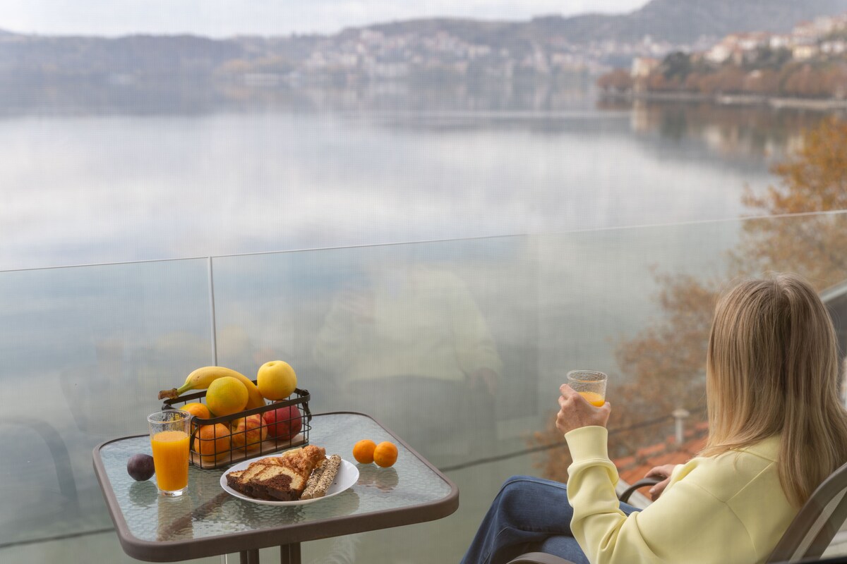 Διαμέρισμα 1ου ορόφου στη Νότια παραλία της Καστοριάς, με άμεση θέα στην λίμνη της. Ο Επισκέπτης έχει άμεση πρόσβαση σε όλο το παραλιακό τμήμα της πόλης, όπως και σε εστιατόρια, τουριστικά μαγαζιά & cafe της περιοχής, χωρίς τη χρήση μεταφορικού μέσου.